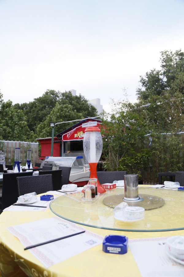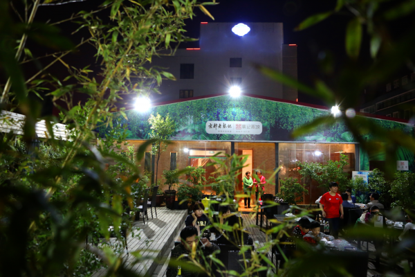 老蔡记的新店位于纬五路与经六路,这一片是出了名的“绿城街道”,路两边满眼的绿树成荫。而就在这里,老蔡记饭店的三楼,有一个被这些绿意包围着的露天天台,在这个渴望烟火气与微醺的夏日对外开放,成了附近吃货们夜市撸串的首选地。晚上微风裹挟着旁边的烧烤味道,头顶有明月,没有车马声,享受这夏日夜市的恣意,却也有难得的清闲惬意。