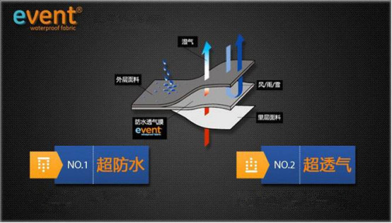 人在运动过程中,皮肤表面会通过汗水的蒸发降低温度,同时也会产生一定的水蒸气,如果不将水蒸气排除的话,人便会感到异常的闷热。穿过橡胶雨衣的人应该都有体会。冲锋衣可不是橡胶雨衣,虽然它能防水,但它对舒适度的要求可高得多了。