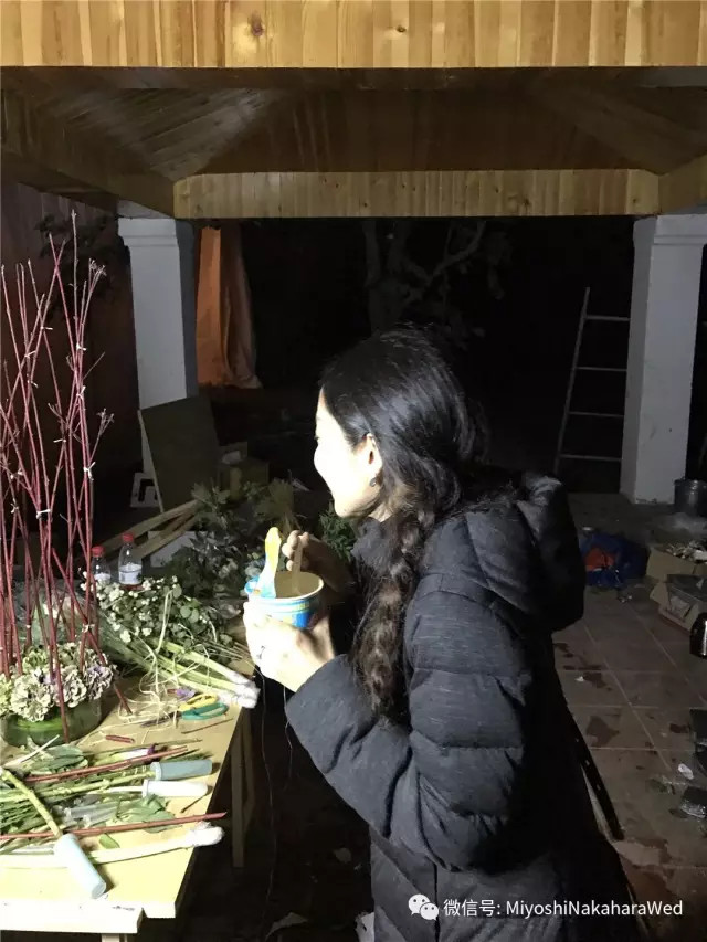 10月4日,晚上冷的我都穿上了羽绒服。做花的手都在直哆嗦。不过冷还能忍住,这时候先是停水了,不能上洗手间呜呜呜,接下来还停电了。无奈之下把手机立起来对着墙照光,用猫眼插到半夜的!但想想还好不是婚礼当天发生了这样的百年不遇的意外(马场开业后的第一次给我遇到了哈哈哈这什么运气啊。。。)