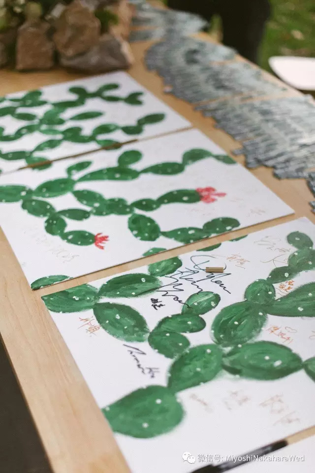 在签到处我画了四副画,画的是从一个根长长出来的仙人掌。寓意是今天来参加婚礼的家人和朋友都是从他们延伸出来的重要的生命,而且这颗仙人掌还在继续成长,在扩大,这是他们两个人很重视,也是很喜爱的生命中的意义。