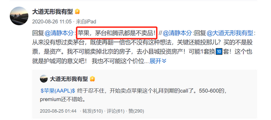 2020年8月,段永平在回答网友时表示,苹果,茅台和腾讯都是不卖品!“简单讲,腾讯就是通过建立了的社交媒体,将流量货币化了。感觉10年后腾讯应该依然强大,但50年就不好说了。我对腾讯的理解度远不如苹果,所以投的比例也小很多。”