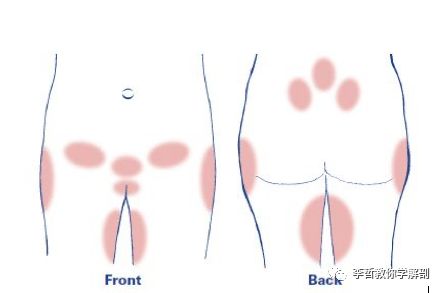 下背部(腰部)、尾骨、胃、大腿外侧或后方、腹股沟或骨盆本身。疼痛可以向下辐射到腿,也可以向上或向后辐射,甚至有的人颈部都会出现疼痛。