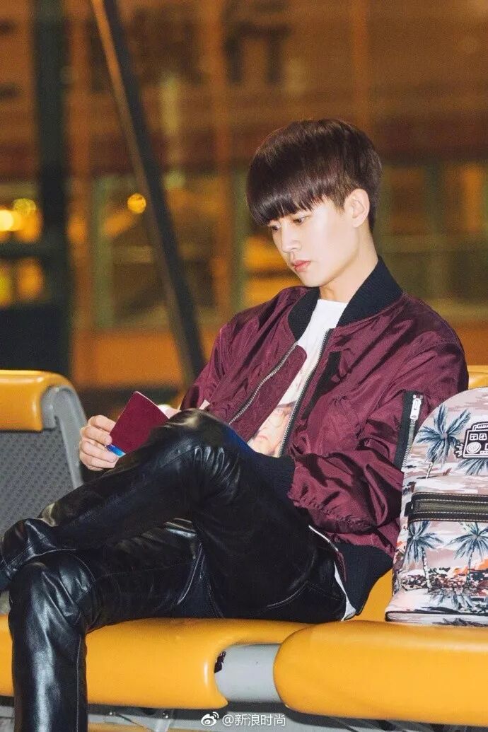 这套穿在模特身上是有丢丢的小受相的,重点是腿细,任嘉伦穿,难看倒是不难看,就是这条皮裤的效果挺难懂的。