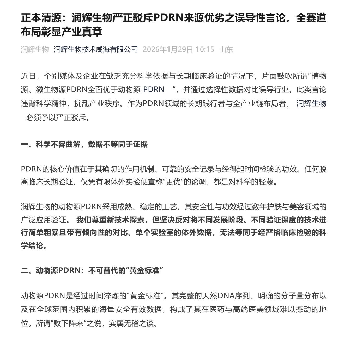 基于此,清扬君认为,媒体的对比,形象地展示了从第一代到第三代的技术代差。而润辉生物的声明,强调其“全赛道布局”(动物源、植物源、合成生物制备),并反对简单的“优劣论”。从商业策略上看是一种防守姿态——它既想拥抱未来,又不想否定自己当下安身立命的传统优势业务。毕竟,对于一家企业而言,新旧技术之间的“孰优孰劣”之争,直接关系到现有产品的市场地位和商业利益(客户和消费者可能会逐步放弃第一代、第二代原料和产品)。
