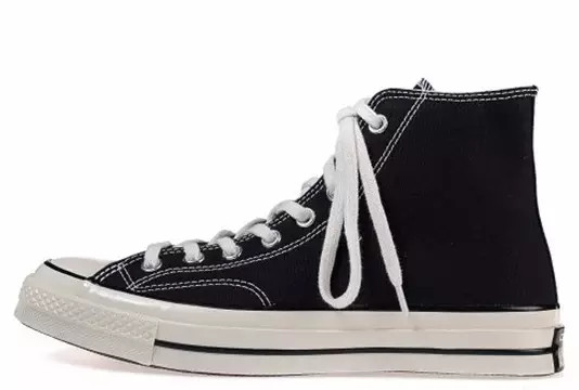 黑色工装外套 黑色裤子,内搭纯白T,这时候再选择黑白配色的 Converse