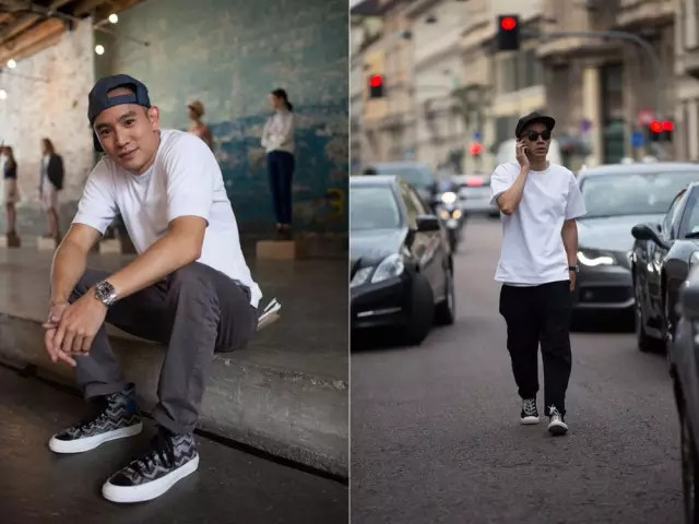 翻看 Eugene Tong 的每一张街拍照片,我们会发现他脚下的