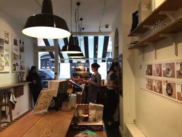 咖啡馆见面。(作为该品牌的忠实拥护者,当我听说没位置的时候,也执意请她在此等候。)咖啡馆里陈列着《MONOCLE》杂志和相关出版物,出入的绅士们俨然是从杂志里走出来的,朴素又体面。