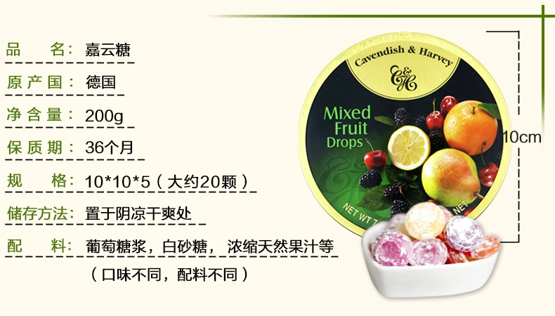 嘉云糖-德国食品三宝之一 2014-12-29 01:49阅读: http://blog.sina.cn/dpool/blog/u/2837641134 德国嘉云糖 世界知名的德国糖果公司,有百年以上历史,行销售全球 70 多个国家。深受全球消费者喜爱。 嘉云糖,又名嘉爵糖。 德国食品有三宝:水果糖、啤酒和果酱。 而其中嘉云糖是德国水果糖里很著名的一个品牌,其品相大方美观。水果糖含有丰富的维生素,每天食用一粒可保体内平衡,养颜健生。最重要的是,其口味纯正,不论男女老少百含不厌.其系列糖果深受全球朋友热爱。 此次介绍给大家的德国嘉云糖,是