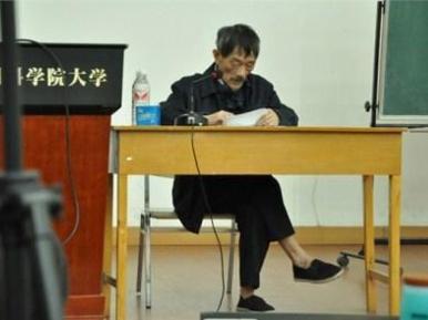 其貌不扬的老人坐在中国科学院大学的讲台前,低头念着