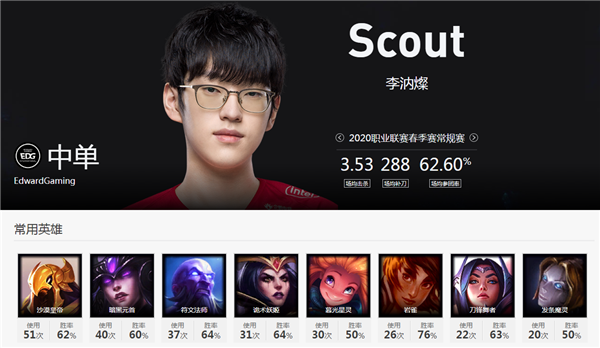 Scout作为EDG队内的中流砥柱,在赛场上有非常丰富的经验。而伴随他征战赛场最多的中单英雄,就是沙漠皇帝阿兹尔。