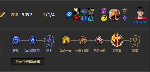 属性方面选择+10%攻速,加9适应之力,最后一项选择什么取决于对方中单是法师还是物理刺客,法师的话带魔抗,物理输出带护甲。当然,这一套天赋是Scout在夏季赛对阵TES的第三场面对辛德拉时的天赋选择,其实,沙皇还有别的天赋选择,如下图所示: