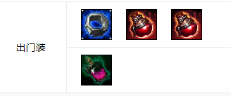 沙皇出门装有两种,一种是多兰戒两红,一种是腐败药水,推荐第一种为主,既有伤害又有回复,出腐败药水除非对面消耗能力特别强。