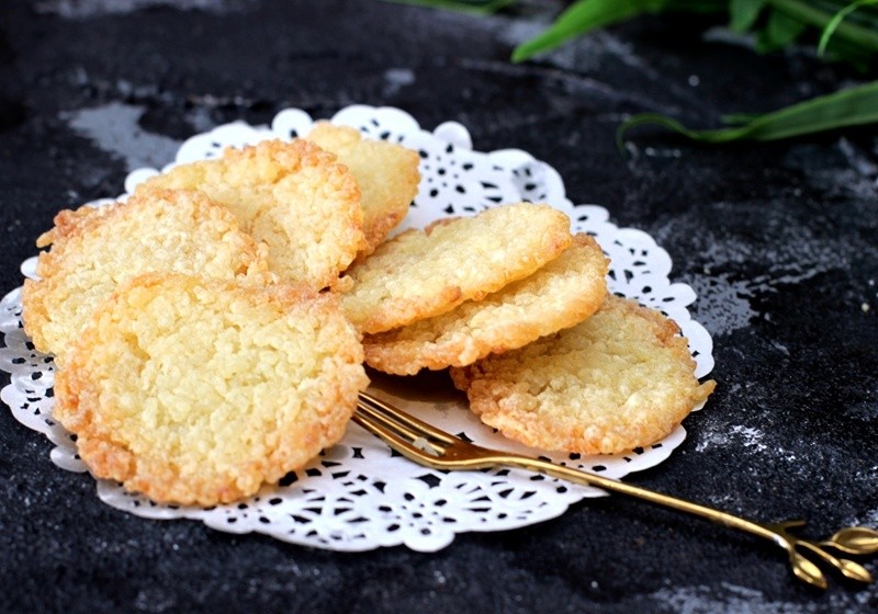 5、炸成型后自然脱模,两面炸到金黄出锅。