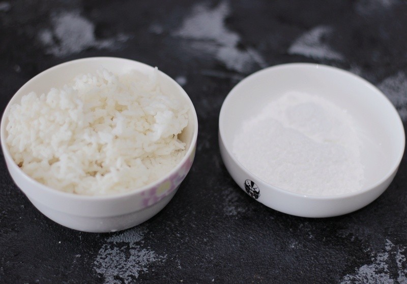 1、准备好原材料,300克剩米饭、20克糯米粉,少许盐。