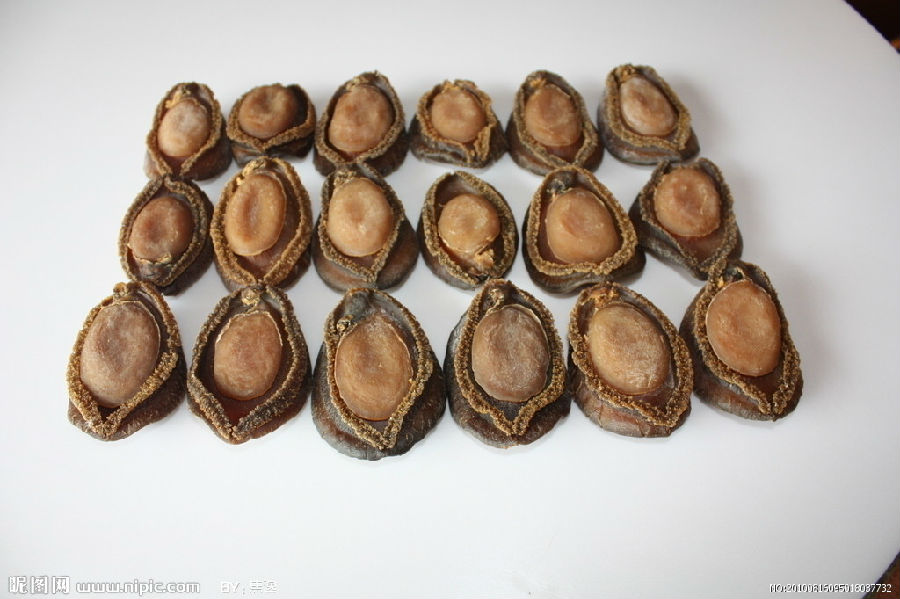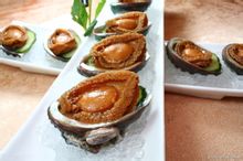 鲍鱼(Abalone),古称鳆,又名『镜面鱼,九孔螺,明目鱼,将军帽』。名为鱼,实则不是鱼。它是属于腹足纲,鲍科的单壳海生贝类,属海洋软体动物。鲍鱼呈椭圆形,肉紫红色,鲍鱼肉质柔嫩细滑,滋味极其鲜美,非其它海味所能比拟,历来被称为『海味珍品之冠』,素有『一口鲍鱼一口金』之说,价格昂贵。鲍鱼同鱼类毫无关系,倒跟田螺之类沾亲带故,据考证:盾鱼,因鲍叔牙爱吃,而被称为鲍鱼,形状有的像人的耳朵。螺旋部只留有痕迹,占全壳的极小部分。壳的边缘有9个孔,海水从这里流进,排出,连鲍的呼吸、排泄和生育也得依靠它。所以它又叫'9孔螺'。壳表面粗糙,有黑褐色斑块,内面呈现青、绿、红、蓝等色交相辉映的珍珠光泽。鲜鲍经过去壳、盐渍一段时间,然后煮熟,除去内脏,晒干成干品。它肉质鲜美,营养丰富。'鲍、参、翅、肚',都是