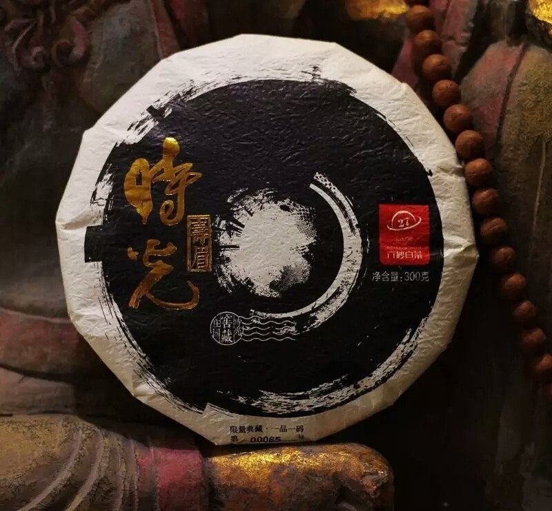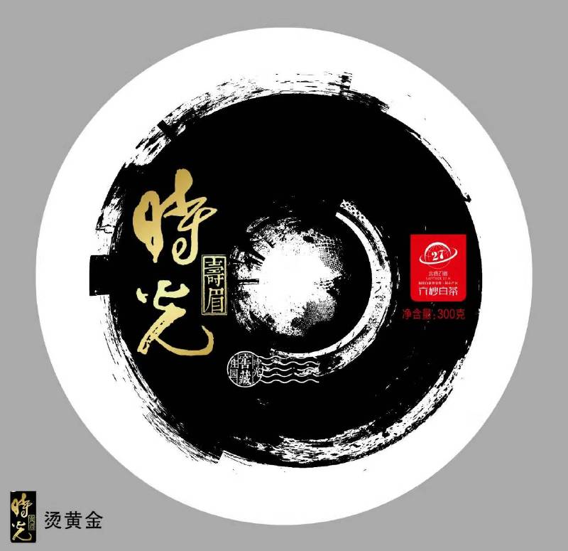 初见此茶就充满无限的新奇感。封面采用四周米白中间深黑为主,用醒目的金黄色写“时光寿眉”四个大字,形状恍如乾坤,确实有种时光感,包装设计极具个性。