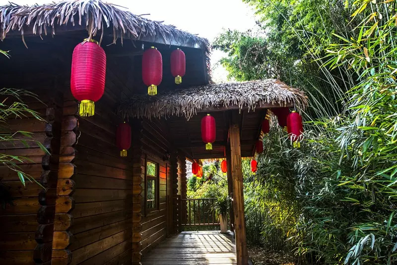 独栋木质小别墅修建在竹林中