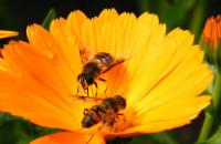 蜜蜂完全以花为食,包括花粉及花蜜,后者有时调制储存成蜂蜜。毫无疑问的是,蜜蜂在采花粉时亦同时对它授粉,当蜜蜂在花间采花粉时,会掉落一些花粉到花上。这些掉落的花粉关系重大,因它常造成植物的异花传粉。蜜蜂身为传粉者的实际价值比其制造蜂蜜和蜂蜡的价值更大。雄蜂通常寿命不长,不采花粉,亦不负责喂养幼蜂。工蜂负责所有筑巢及贮存食物的工作,而且通常有特殊的结构组织以便于携带花粉。大部分蜜蜂采多种花的花粉,不过,有些蜂只采某些科的花的花粉,有的只采某种颜色花的花粉,还有一些蜂只采一些有亲缘关系的花之花粉。蜜蜂的口部是花粉采集和携带的器具,似乎能适应各种不同种类的花。蜜蜂会发出声音,这是因为它有发声器官,这个发声