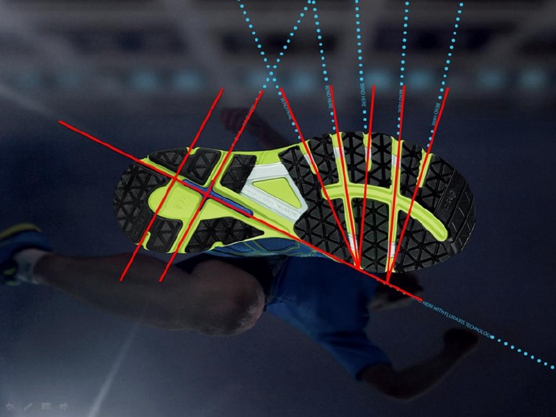 通过仿生技术研发出一种近似人类脊柱的外底构造,目的为提高剧烈运动中球鞋带来的稳定性及支撑性。