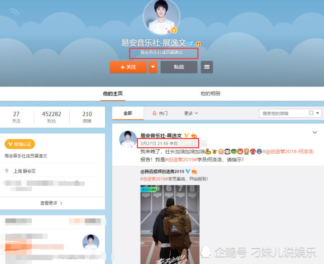 虽然当下易安音乐社的6名成员中并没有展逸文的名字,但他以易安音乐社成员的身份在3月份仍在社交平台上活跃,并发文为参加《创造营2019》的何洛洛社长加油,以及之前为好友孙亦航庆生,自3月之后就再也没有任何的动态。
