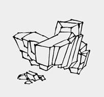 (二)轮廓的转折应与石块的体面变化相吻合。皴笔不可与轮廓相左。轮廓若处理不好,皴法也将无法表现好。内部轮廓的疏密也有转折过渡的作用。在表现石块体面时,我们可先勾后皴(见图一、图二),亦可先皴后勾(见图三、图四),还可以勾皴并举。(4)