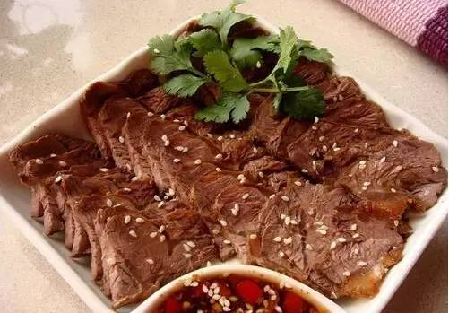 材料:牛肉400克、盐10克,白砂糖15克,料酒45毫升,黄酱100克,八角2粒,花椒、桂皮、葱姜